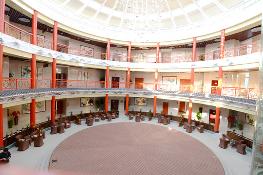 云上书吧、蔚蓝星空科技馆只是全南县旅游综合服务中心的一部分,这块有“七馆一中心一街区”,除刚才提到的云上书吧、蔚蓝星空科技馆外,还有港澳台街区、荣胜园喜宴酒家、桃源里城市酒店、泰式SPA、桃江国际影城等。