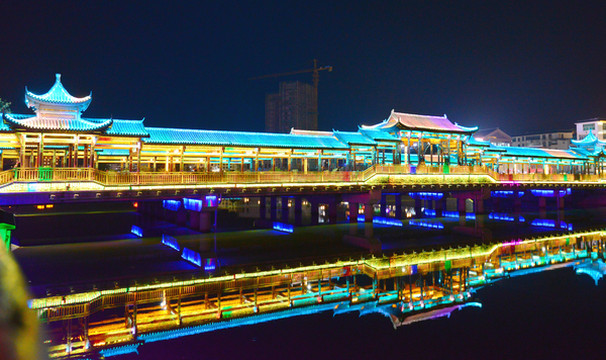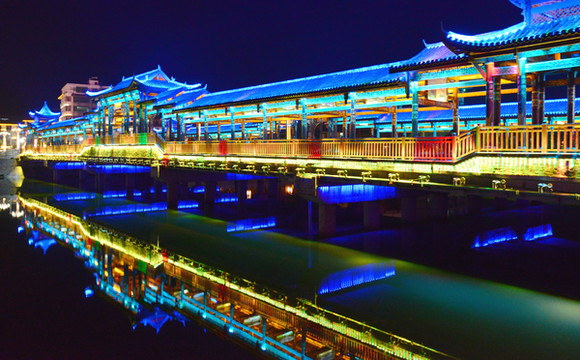 桃江上有两座廊桥,一座在江面上,一座在水里。你,要走哪一座?