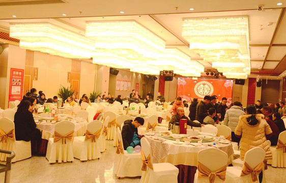 当晚在荣胜园享用“醉美全南宴”,详见文末的美食单篇,我们进店后看到一楼大厅坐满了人,有人正举办婚宴。