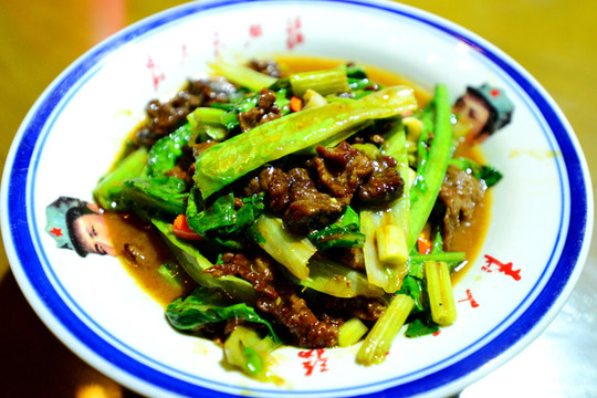 在品尝特色牛肉时,立马感觉出了牛肉炒得很嫩,厨师的火功了得。
