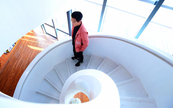 这家书店开在全南旅游综合服务中心,名叫“云上书吧”,走进店里看到的是螺旋的楼梯、隧道般的书架、高高的书墙......充满设计感的云上书吧处处呈现着网红元素。