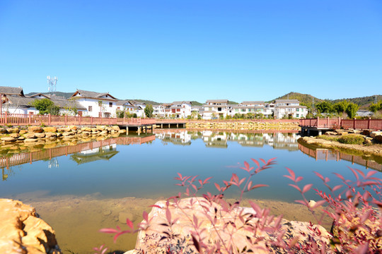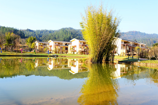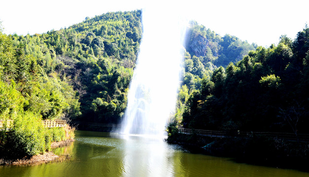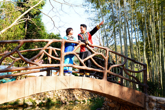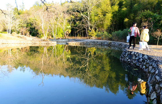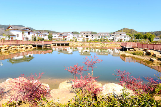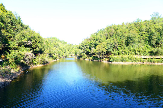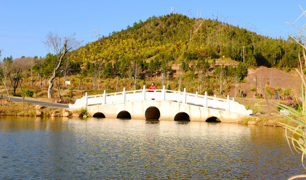 山脚有一个清澈的大湖,叫福寿湖,湖上有座福寿桥,到福寿桥上走一走,添福又添寿。