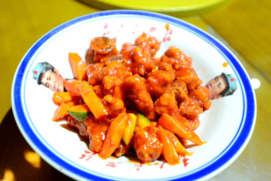 糖醋排骨,不太甜,不同于浙江、上海的做法。