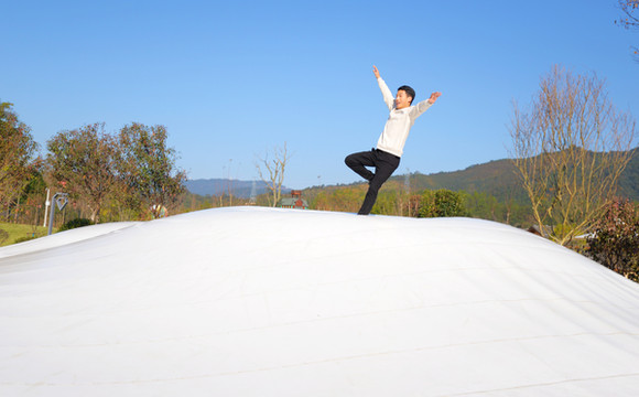 云上书吧的后楼有个蔚蓝星空科技馆,是江西省唯一的科技艺术互动主题馆,里面的家伙太炫酷了,有神舟一号太空舱、乐高益智天地、机甲大师等20多个益智体验项目,很多是我没见过的,小孩子来,太适合了。