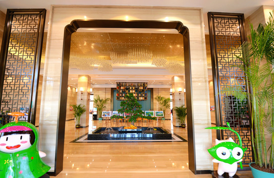 酒店大堂迎宾区有两个可爱的小娃娃,我知道这是全南的形象代言人:全宝&南仔。“全宝”头戴蓝巾帕,蓝巾帕是客家人的象征,头顶长着一朵硕大的灵芝,灵芝是全南的重要产业,“南仔”源于古树上的一片叶子,设计成精灵模型,表现的是全南的美丽自然风光,不得不感叹全南政府的用心,有这么Q的代言人,一定会招客来。