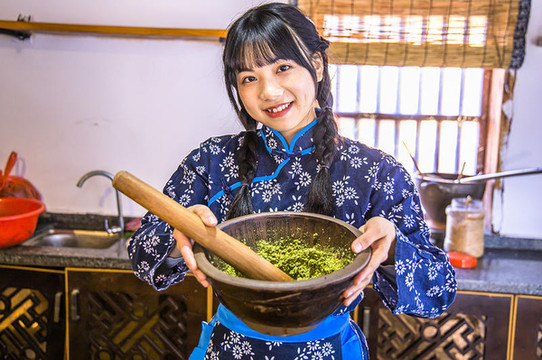 来到村里,首先就来打卡赣南客家擂茶,在这里可以亲自现场和当地啊妈学习制作,特色的赣南客家擂茶,以鲜茶叶、糯米、芝麻、黄豆、花生、盐及各类青草药为主,喝上一杯擂茶满口生津,回味久远。