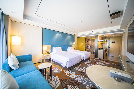 房间内部温馨舒适,格调高雅,房间内配备了先进的智能客控系统,特别是激光投影影音系统简直是高端大气上档次,同时支持PMS手机线上操作,相当便捷,躺着就能享受高清晰的影视效果。