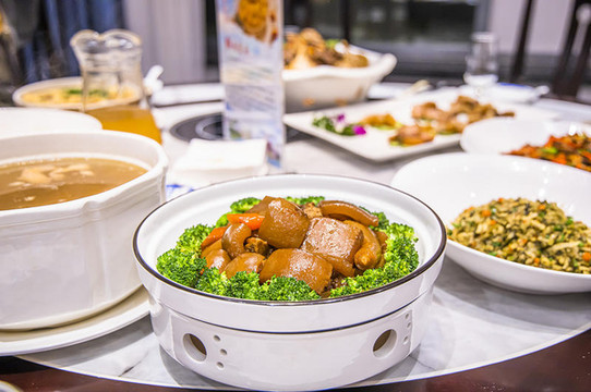 午餐时间我们来到:特色酒楼。听着名字就很不一般啊!特色酒楼据说在1996年创始,到今天已经做了24年的干烧卤猪脚,店里每天都有很多慕名而来的客人。