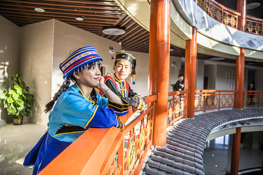 不同的花卉不同的美丽,在蝴蝶兰培育基地,这里的花开得正好,一朵朵如此娇艳让瑶族小妹妹喜欢的不要不要的。 走进兰桂坊客栈 这里不得不给大家推荐一特色客栈,简直是太有感觉,被本地的朋友种草的这家。兰桂坊客栈,中间大厅是超大的圆形造型,很喜欢的就是大厅中间还有一个很大的圆形舞台。真的是让人眼前一亮。很难想象这么一个小镇还有一个这么有趣有瑶族特色的客栈。