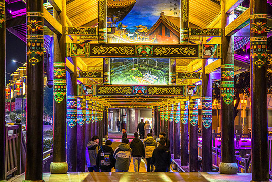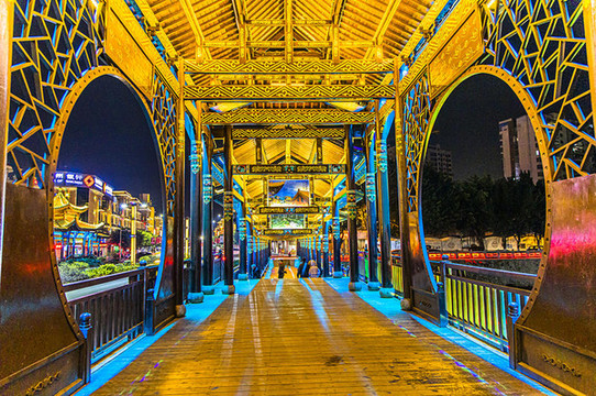 璀璨的灯光如梦似幻,一边是历史的见证,一边是城市车水马龙的来来往往,解放桥飞檐翘角、雕花木窗,整个廊桥宛如一道亮丽的彩虹,如今这里会有很多男男女女都会来此打卡拍照。
