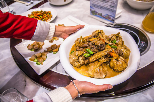 全南宴,一共有12道菜,都有:黄精煲土鸡、全南烩猪旺、瑶乡油浸肉、金牌蒜包鸭、全南客家熏鸡、雅溪酿豆腐、特色烧牛尾、西米莲藕丸、双色如意卷和笋丝炒浸菜,每一道都是心头大爱,好滋味可真真的不错!