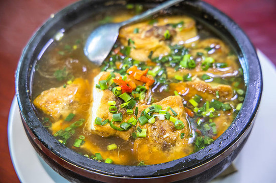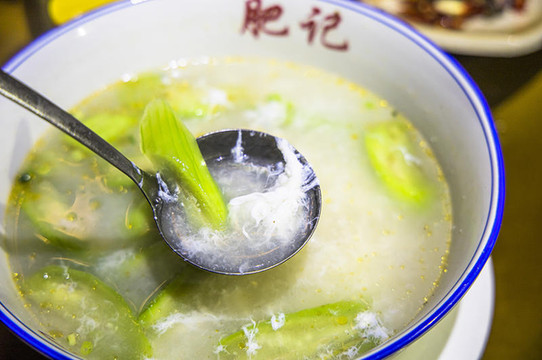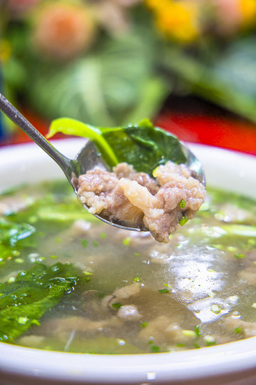 就是这样一碗简单的三鲜猪血汤,制作可谓是非常的讲究了。汤低一定是骨汤,有辣和不辣两个版本,猪血汤中放了猪脑、猪肝、瘦肉等,猪血软滑爽口,猪杂新鲜,适中的辣味增添了更丰富的口感,汤鲜美。店家制做更是用心,为了保证食材的新鲜,他们凌晨三、四点钟就出门去采购。这里的人吃猪红不单可以早餐吃,午饭吃,连晚饭都还有猪红汤这道美食。磨斋,但这家的有些特别,首先表现在外形上的不同,尝过一个后口感不同。