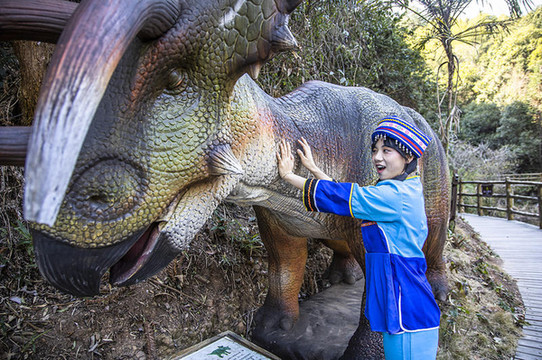 下山的时候建议大家去滑一下旱滑道,滑旱滑道有提供裤子手套等,小朋友也可以玩,下山的时候真的值得试一下,太好玩了。 从滑道下来就是返回的路程,一路上特别有意思,简直就是恐龙世界的科普走廊,这样一路上都会遇到各种各样的恐龙,和各种大型的动物,你从旁边走过还会对你发出声音,有的甚至还会动起来哦!