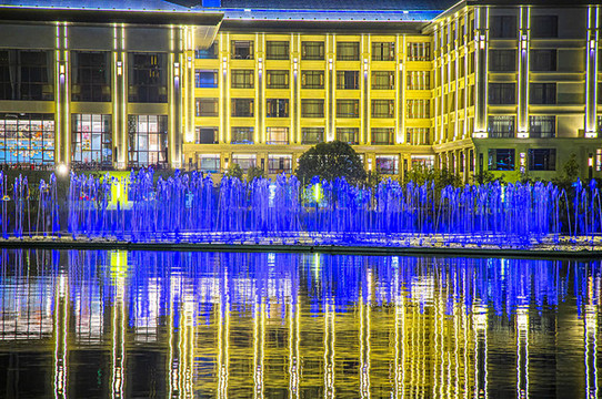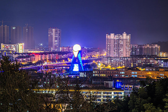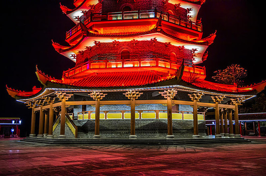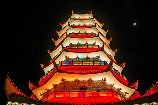 作为建县100周年大庆而建的标志性建筑,百盛塔彰显着全南昔日的辉煌,又昭示着全南欣欣向荣的明天。夜色中的宝塔是条“变色龙”,每十秒换一次色,变幻中的塔美轮美奂。