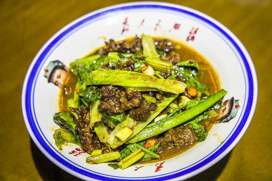 刚刚出锅的炒牛肉很鲜嫩, 牛肉炒得很嫩,入口即化的感觉。据说这是最最火的一道菜呢。