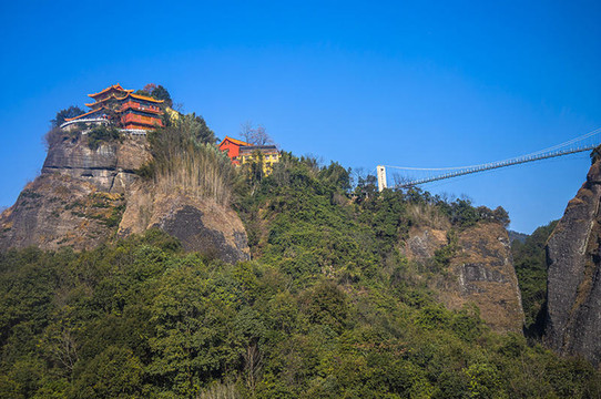 走过玻璃桥,就来到了天龙山寺庙,可以站在天龙山的最高点,远眺天龙美景。这座寺庙是在建在悬崖上面的,在上山坐缆车的时候就可以看到位于山顶。由好几栋建筑组成,其中大雄宝殿是最为壮观的一栋建筑,寺庙金碧辉煌,香火旺盛。