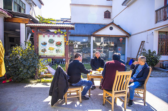 属于农家菜系,院子里阳光明媚,来此的都是三五成群,或是一大家人来这用餐,晒着温暖的太阳,院子里的大人孩子都吃的很香的。