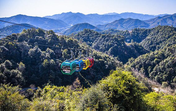 绝美全南,圣境天龙山,这一天天气可真真的好呢,搭乘索道向山上出发,远远即可看见山顶险峰突起,怪石峥嵘,在两个山头之间还有一架玻璃天桥。一路直达山顶,从缆车里就可以看到气势恢宏的全南美景,天龙景区的山河雄伟。