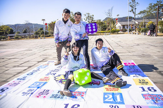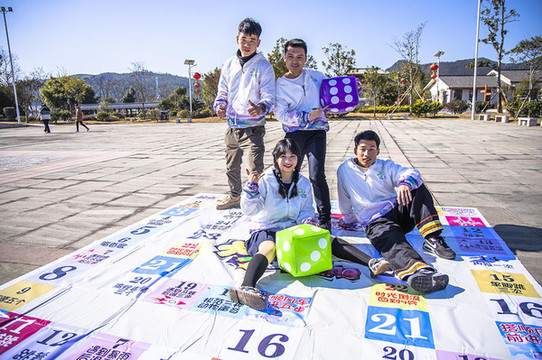 同行的小伙伴们玩起了大富翁游戏来,反正地方宽阔特别适合进行户外的活动,你看我们的伙伴们玩的多开心,阳光下只听见连连清脆的笑声一阵一阵的飘过。