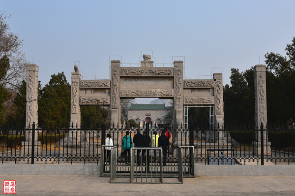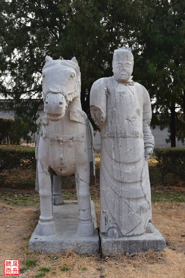 走过牌坊,是一条总长189.5米的神道,神道两旁肃立着栩栩如生的石文吏1对、控马官1对、石兽14对,共16对石像生,石兽性别分明,左公右母。石兽中,9对为獬豸、石羊、石虎、狻猊、麒麟、骆驼、大象、石马,另有5对究竟为何种动物,后人竟不得而知,大概都是朱翊鏐生前想象出来的瑞兽。这些精雕细刻的石像生虽然都遭到了不同程度的破坏,但其精美艺术品的气象还是让人感觉扑面而来。