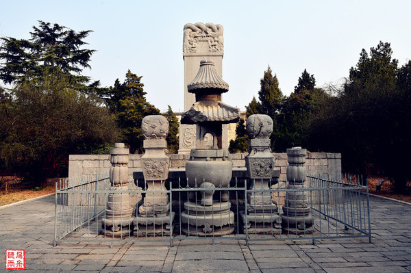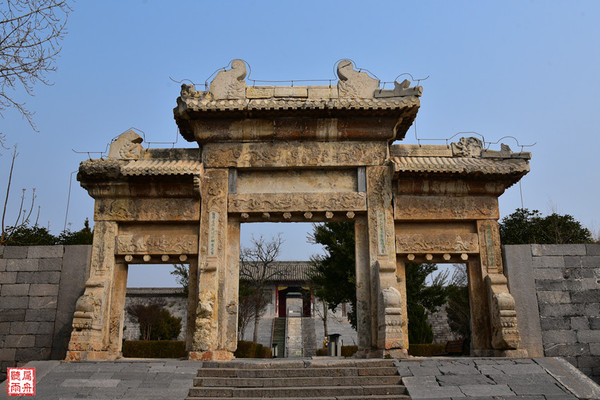 现有潞王陵景区的大门,是一座雕饰着云龙图案的青石牌坊,上刻“潞藩佳城”四个大字,这里是整个墓区的起点。牌坊东西两侧,各有华表一座,上面同样雕饰云龙图案。自古以来,龙纹装饰都是皇帝御用的专有图案,其他人等无权使用,但在潞藩佳城的建筑物上,龙纹图案却比比皆是。