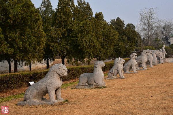 明朝的典制,是帝王陵前的神道仅设狮、麟、象、驼、獬、马六种石兽,太祖朱元璋的孝陵、成祖朱棣的长陵概莫能外。潞王朱翊鏐并非皇帝,居然逾越祖制,一口气在神道两旁摆设了14种石兽,其骄奢之气,在此又可见一斑。