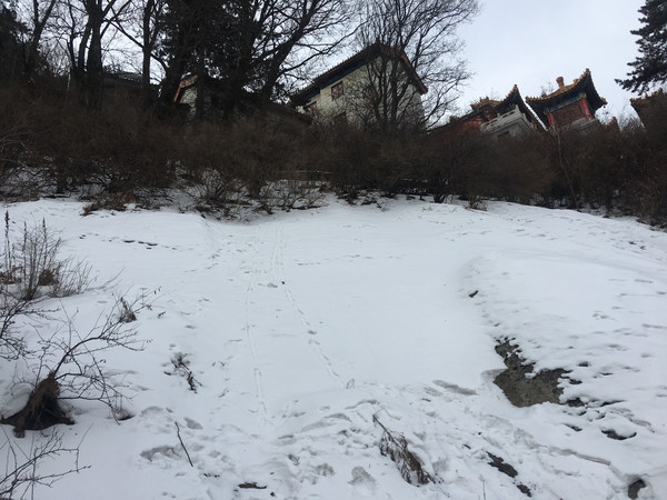 走到五云峰,开始下雪了,当第一颗雪花落到我眼前时,我乍一看以为是羽绒毛,后来越来越多的雪花满天飞舞,我这才意识到:“下雪了,终于下雪了!”我激动不已,对我我这种南方人来讲,见到雪是一件非常不易的事情。这回,我终于真切体会到了北方人口中的“雪如绒毛”。