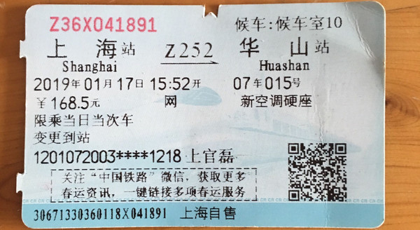 接着乘公交到了华山站,最后坐上火车到西安站。