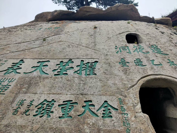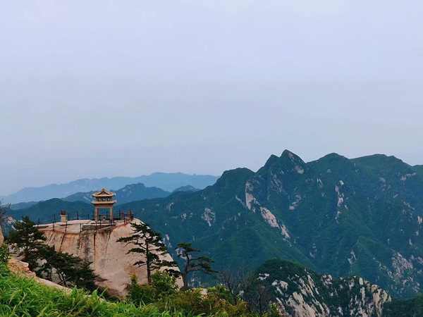 西峰上景观比比皆是,有翠云宫、莲花洞、巨灵足、斧劈石、舍身崖等,并伴有许多美丽的神话传说,其中尤为沉香劈山救母的故事流传最广。在西峰可以看到完整的日落,今天时间有限,只能领略秀美山川了。