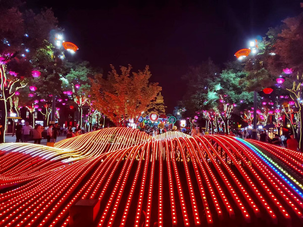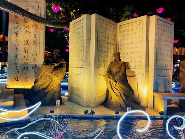 大唐不夜城位于西安曲江新区举世闻名的大雁塔脚下,南北长1500米,东西宽480米,总占地面积967亩,总建筑面积65万平方米,以盛唐文化为背景,以唐风元素为主线,以体验消费为特征,贯穿玄奘广场、贞观文化广场、开元庆典广场三个主题广场,通过灯光、雕塑、景观、文化浮雕柱、碑刻、水景、立体交通......将历史人物、英雄故事有机结合现代文化,完美地诠释了大唐不夜城
