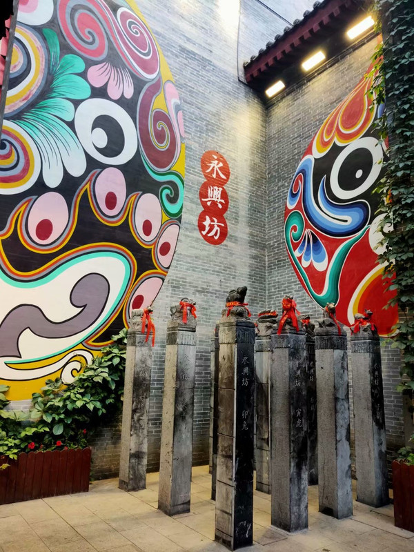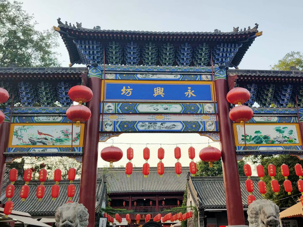 永兴坊,原地为唐朝魏征府邸旧址,政府仿建古时的“坊、肆"、牌楼,同时添加休闲绿化广场、内街、井房以及建筑物外墙仿古装饰等等,将关中牌坊和具有民间传统的建筑群组合,形成古里坊式布局,展示古长安城的街坊式形态和历史生活气息,以及传统民俗生活空间。