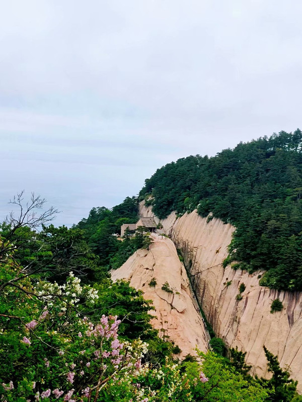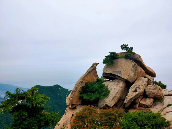 4、中峰。又称玉女峰,峰上林木葱茏,环境清幽。中峰是五峰中最易到达之峰,从西峰上山后依次到达南峰、东峰,再由东峰往回走不久便到达中峰,相比其他峰的险峻陡峭,中峰要舒缓很多,可作为五峰攀登之休憩歇脚站。
