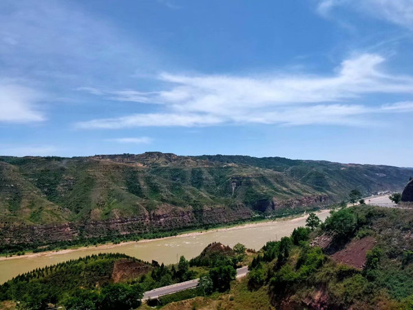 作别老乡,沿着盘山公路往下行,一路群山逶迤、天高地阔,山脚下黄河随着山脉日夜奔腾、蜿蜒向东。