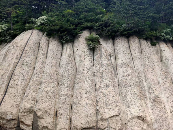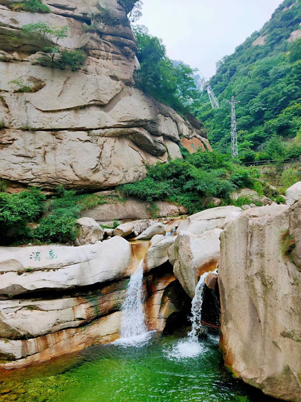 下午三点半,在北峰搭乘下山缆车到达巴士中转站,抬望眼,华山又以另外一种雄姿出现在我眼前,正印证了那句诗“华山突兀耸苍穹,坐断坤维千万峰”,正在遗憾此季在华山上没有看到瀑布溪流,山腰处一汪清泉从夹缝中自然流泻,实乃“九层峭壁划青空,三级鸣泉飞暮雨”!