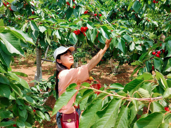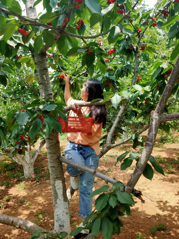 硕果累累、收获满满!在当地卖到三四十元一斤的樱桃,本地价格低到8元/斤,此时在采摘园才15元/斤!