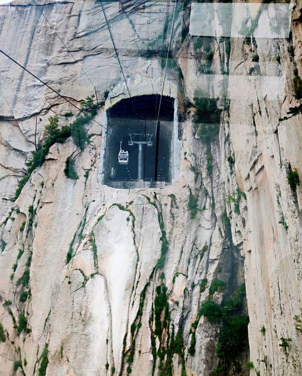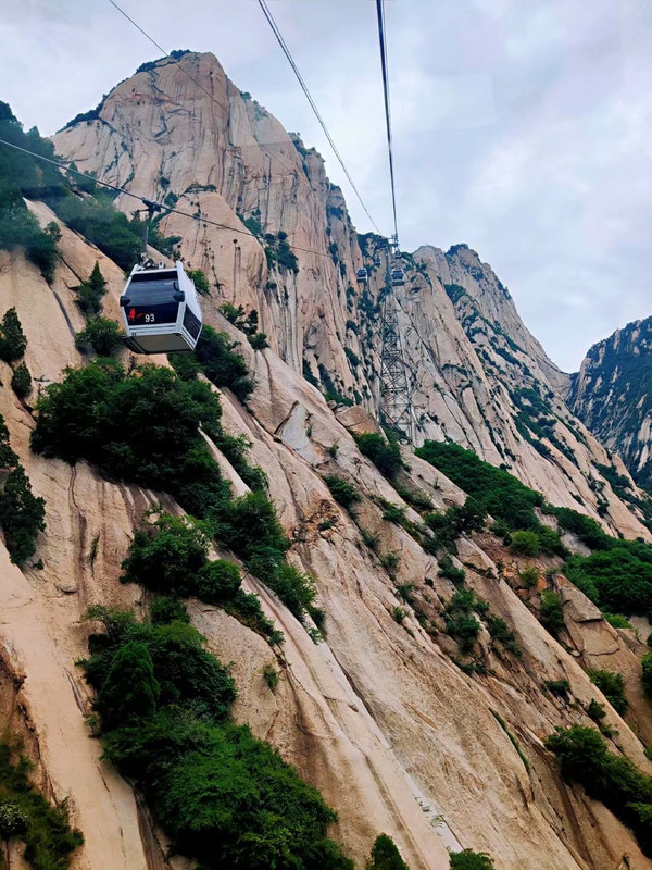 坐了两个多小时的旅游大巴,我们来到了陕西省华阴市。华山,古称"西岳",雅称"太华山",为五岳之一。听闻圈内很多好友当年搭乘西峰的上山缆车都浑身打颤,更别说直视脚下的万丈深渊,足以证明华山的险峻。今天游客不多,我独自一人搭乘一辆缆车,正好可以360°无死角全揽华山的千峰万仞、兀立突起。