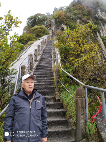 要不要往上爬到西峰去?天又下雨,石阶有点滑,我们量力而行,决定返回了,沿着另一侧的下山路往缆车站前行,沿途也有些景色。