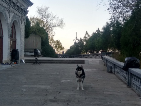 我一口气爬到后面一座山顶的新造的一座楼边,碰到一只大狗档住了去路,说明我是第一个上山客,工作人员还没把看门的带回去。