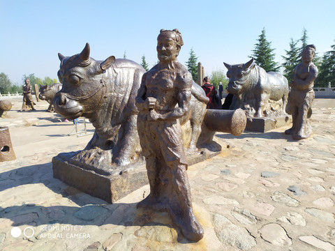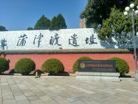 我们来到了浦津渡遗址,这里前几年出土了轰动一时的黄河大铁牛,这是古代黄河上锚住浮桥缆绳的基础,历史上黄河多次泛滥改址,把浮桥的锚基也淹没在黄沙底下了。人们根据史料终于找到了传闻的黄河大铁牛和力士,找到了古代黄河上很有名的浦津渡遗址。原来是黄河的位置变了,铁牛的位置没变。它们是铁铸的,顿位不轻,除了照片上的4组铁人铁牛及立柱外,在它们的底下连铸在一起的还有很大很深的铁的基础,从地下展示厅可看到全貌,出土时把其整体抬高了。列届中央首长都来过。我有点纳闷,这么重要的景点为什么山西省不大力宣传,我这喜欢文物古迹的也是偶尔遇到的。可以预言在黄河的另一边还埋有另一组大铁牛。