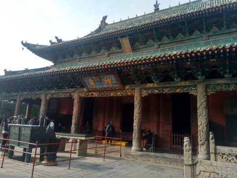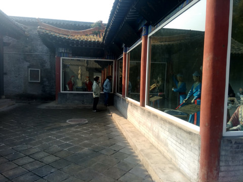下午我们去了西岳庙,在华阴县的北边,可称是陕西的故宫,规模很大,可惜留有的照片不多,大概是手机没电的缘故。大殿里有2幅很大的壁画,内容像是洛神赋里神的画面,可惜没照下来。