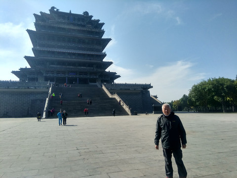 先去最远处的鹳雀楼,在黄河边,原建筑早荡然无存,人们根据古人留下的诗句重新选址设计建造的,却也很壮观。难能可贵的是恰逢一群南迁的大雁,传来阵阵雁叫声,一会排成人字形,一会排成一字形在上面飞过,我是第一次看到真实的大雁南飞。