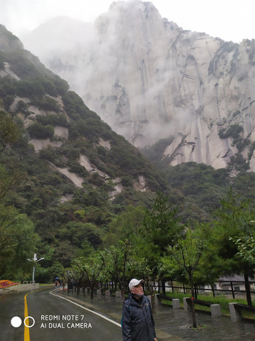 10月13日我们老俩口坐上了上海到华山的列车,卧铺车厢躺了一晚第二天的一清早到了华山站,天气不好,还在下雨,我们到了华阴县预订的宾馆,放下行李拿了雨具决定上山,县城内有一免费班车是到华山游客中心的,等到了此班车,说是要看健康码才能上车,我们心急慌忙一时打不开,就说让我们上车后再打开给他看,那扭蛋司机不开车,以前没听说坐公交要看健康码的,相持不下叫来了警察,听了我们的情况,2位小警察叫我俩坐上他们的车送我们到了景区,真是遇到了热心人,老陕民风诚朴我们处处遇到好心人,可惜没留个影。