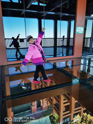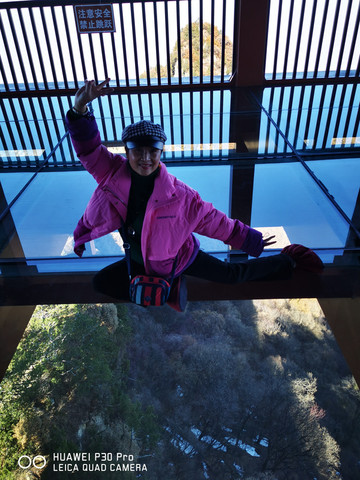 大家赞叹惊讶的同时,在玻璃桥上欢欣而起,扭动着舞姿窈窕的身影,拍照实录留下美好的瞬间。欢舞忘形中将自己手中的太阳镜掷与山涧,得失之间思过也许是另一种收获吧。