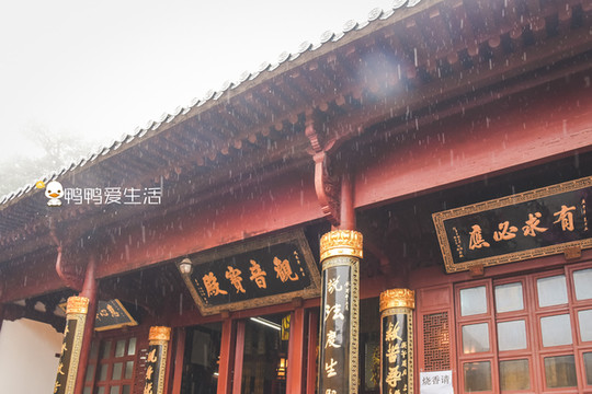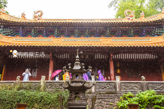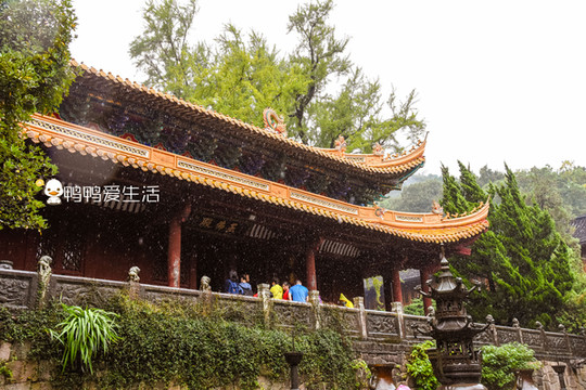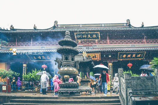 整个寺内古香古色,游览秩序井然,大雨中仍可见香火缭绕梵音靡靡。