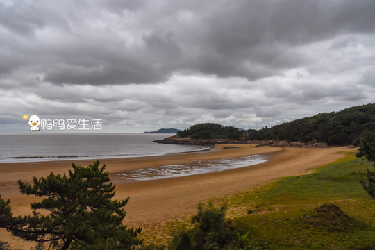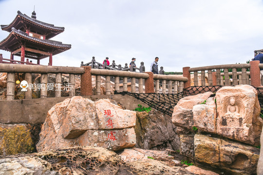 百子堂边上边上百步沙停车场,这里可以坐车直达紫竹林景区,但看到排队的人比较多,指示牌上写步行10分钟可达,便沿海边散步前往紫竹林。厚厚的云层下百步沙有不一样的美景。