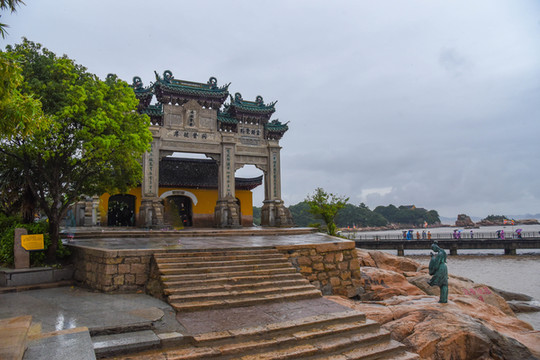再往前走便是码头,“普陀圣境”的大山门便是在这里,这也是普陀山的标志性建筑。