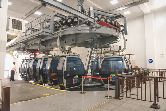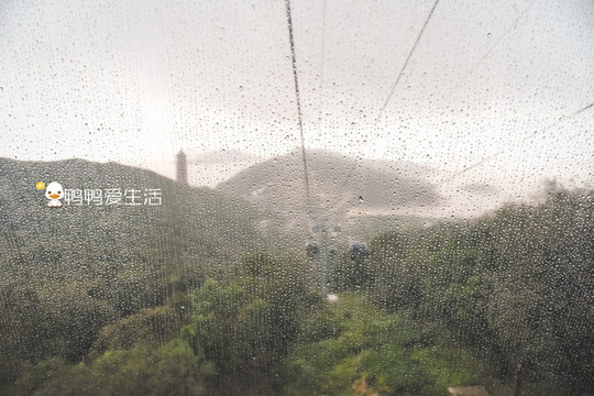 索道为封闭的箱体,循环运行,非节假日高峰期时很快便能坐上,索道时间大概五六分钟,至于要不要坐就是见仁见智的看法了。坐在索道上可以往下俯瞰山体美景,在云雾雨中倒是别有一番意境,如果晴天应该更美。