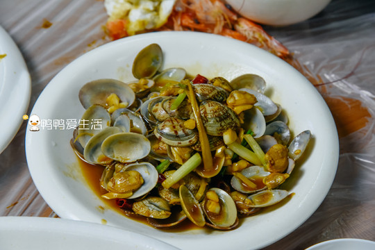 还有爆炒花贝、紫菜虾皮汤、时令蔬菜,味道都不错,分量足