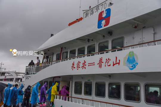 5、关于着装:入寺建议穿过膝的长裤,不要露肩(虽然普陀山并无明文规定)。一定要穿好走的鞋子,在岛上大部分还是靠步行为主。9月的天气,20度左右,温度适宜。只可惜这次刚好碰上台风尾季,都在下雨。下雨建议穿雨衣,寺内人多拥挤不好打伞