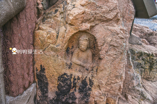石崖上刻有"现身处"三大字,传说观音菩萨曾在此屡现灵相。